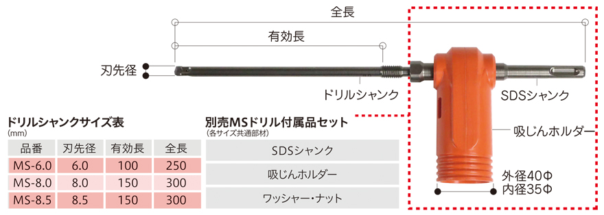 製品名 吸じんドリルシャンク MSドリル
