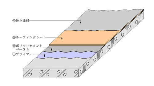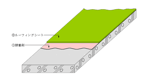 軽歩行接着工法(F201工法)は、RV-F201、RN-F201及びRE-F201では、シート上に軽舗装材を規定量塗布することにより着色仕上げができ、かつ軽歩行が可能になる工法である。防水層の保護と、軽歩行を目的とする露出屋根、又は開放廊下、ベランダなどに適用する。